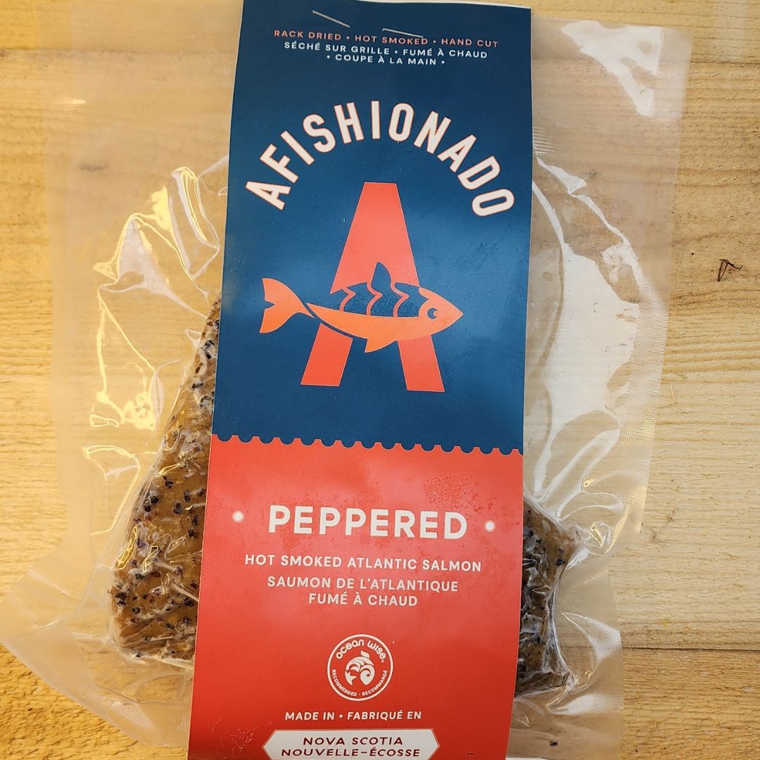 - Peppered - 6 oz Wet brined in sweet and salty brine and then hot smoked to perfection with a sprinkling of pepper