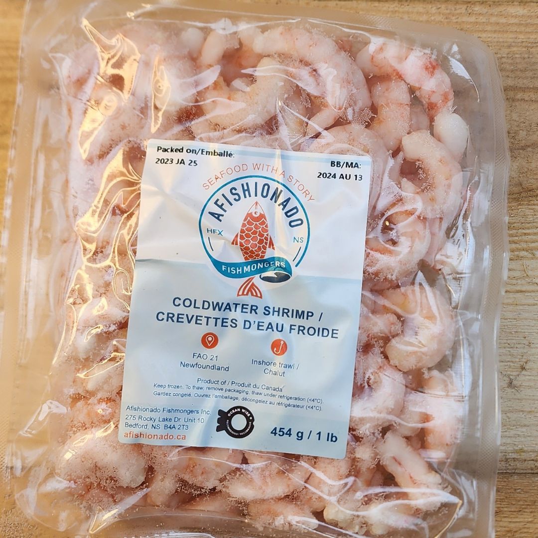 1lb, 454 g, approx 125/lb, cooked/frozen northern coldwater shrimps which are inshore trawled from Newfoundland. These tiny little East Coast beauties will have your mouth watering! Excellent for shrimp cocktails, salads, dumplings and more!