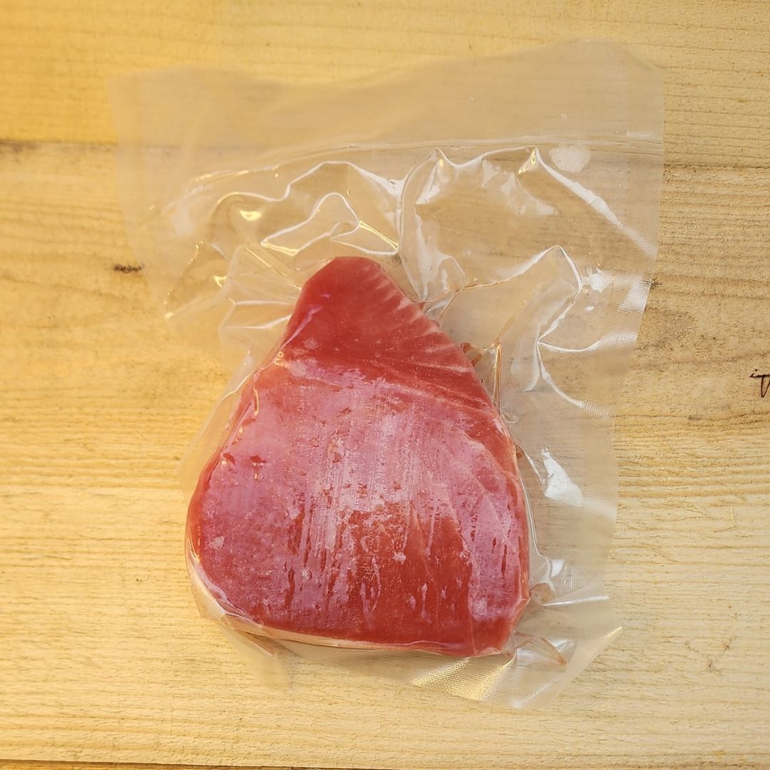 6 ounce sushi-grade yellowfin tuna steaks from Vietnam. The tuna steaks are pole and line caught and provided to us by Unomundo, an importer of sustainable seafood. These come individually vacuum packed and frozen.